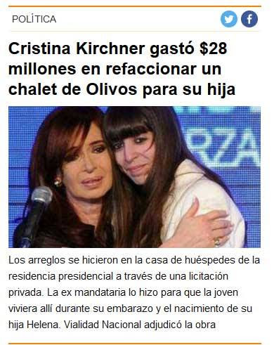 Desde el portal regenteado por Daniel Hadad publicó una noticia que acusa a Cristina y Florencia Kirchner de haber utilizado $28.000.000 de pesos para remodelar un chalet en la Quinta de Olivos. Ante la acusación sin fundamente, y sin firma, la contundente respuesta no tardó en llegar.