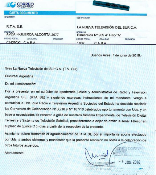 Ya en marzo, el titular de Medios y Contenidos Públicos de Argentina, Hernán Lombardi, había anunciado a los medios de comunicación el retiro de la señal de teleSUR de las cableras del país tras argumentar una supuesta falta de pluralidad.