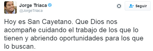 No se trató de un chiste, ni tampoco de una cuenta de twitter ficticia. Sino que el mismo funcionario a cargo de la cartera laboral, Jorge Triaca, le rezó a San Cayetano para que abra oportunidades. En un solo posteo, la política laboral del oficialismo al desnudo.