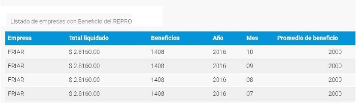 La generosa ayuda del ministro Jorge Triaca se dio en cuotas de $2.816.000 desde julio hasta octubre de 2016, y formó parte del Programa de Recuperación Productiva (REPRO), destinado a firmas que logren acreditar procedimientos de crisis y riesgo de despidos de personal y quiebra.