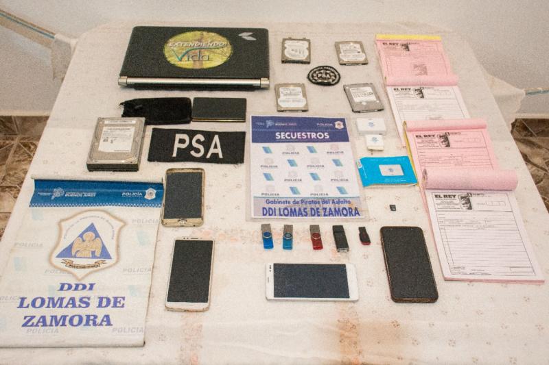 Como consecuencia de los operativos efectuados en conjunto con efectivos de la Policía de la Provincia de Buenos Aires, la PSA secuestró tres celulares, una notebook, cinco pendrives, seis discos rígidos, dos posnets, una tarjeta SIM y talonarios.