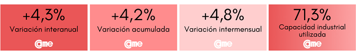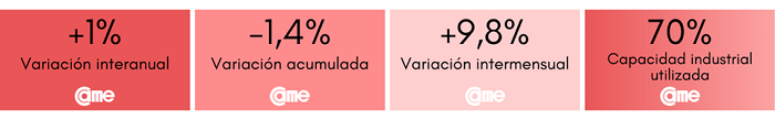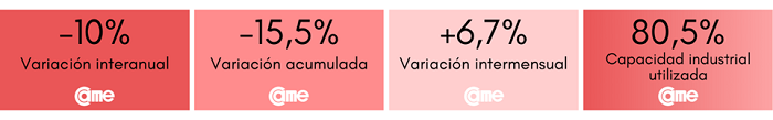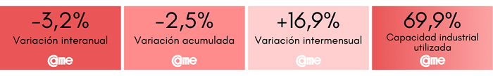 Estos resultados surgen del Índice de Producción Industrial Pyme (IPIP), que elabora CAME, con una muestra que alcanzó a 409 industrias pyme a nivel federal.
