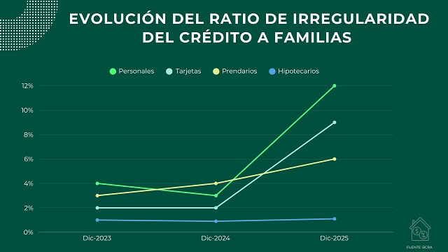 El aumento no es homogéneo. Mientras la irregularidad en empresas se ubicó en 2,5% (desde 0,8% un año atrás), en los hogares el salto fue mucho más pronunciado. El propio BCRA señala que los préstamos personales y las líneas con garantía prendaria explican buena parte del deterioro. Es decir, el crédito destinado al consumo y a la adquisición de bienes durables es el que muestra mayores tensiones.