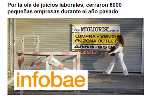 En lo que muestra la verdadera estrategia del Gobierno para cargarse con los derechos laborales de los trabajadores, ahora los medios oficialistas indican que por los juicios no crecen las empresas. Además responsabilizan a los trabajadores que iniciaron juicios por el cierre de 5000 pymes.