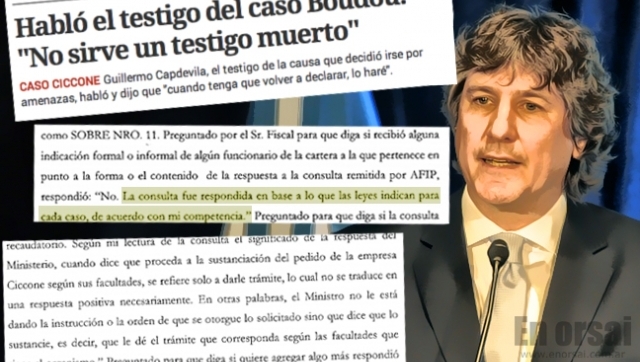 En condición de testigo, Capdevilla declaró -según consta en los documentos judiciales-: “Preguntado por el Sr. Fiscal para que diga si recibió alguna indicación forma o informal de algún funcionario de la cartera a la que pertenece en punto a la forma o el contenido de la respuesta a la consulta remitida por AFIP, respondió: ‘No. La consulta fue respondida en base a lo que las leyes indican para cada caso, de acuerdo a mi competencia”.