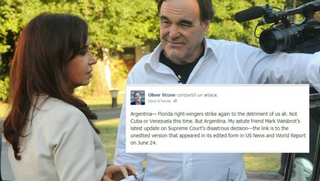 “Argentina: el ala derecha del Estado de Florida golpea de nuevo en detrimento de todos nosotros. No es Cuba, ni Venezuela esta vez, sino Argentina”, comentó Stone al compartir en su cuenta de Facebook una nota del columnista de The Guardian, Mark Weisbrot, titulada “¿Quién disparó a la Argentina?”.