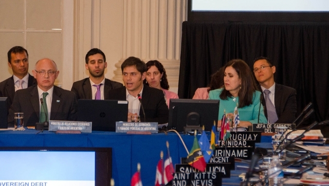 De este modo, la visita del ministro de Economía a Washington cumplió cabalmente su propósito. Axel Kicillof persuadió a los 17 cancilleres presentes y a otros 16 representantes diplomáticos de nuestra América que la sentencia maldita del juez neoyorquino Thomas Griesa sienta un precedente peligroso. Jaquea la capacidad de los Estados soberanos de renegociar su deuda en casos de necesidad. Y esto es algo mucho más frecuente de lo que algunos sinvergüenzas nos quieren hacer creer.