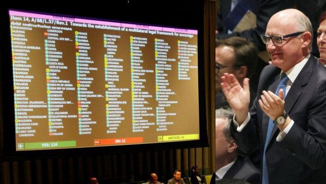 La propuesta de Argentina y el G77+China de establecer un marco jurídico global para los procesos de reestructuración de deuda en el seno de las Naciones Unidas fue aprobada por 124 naciones. Sólo 11 votaron en contra y 41 naciones se abstuvieron.