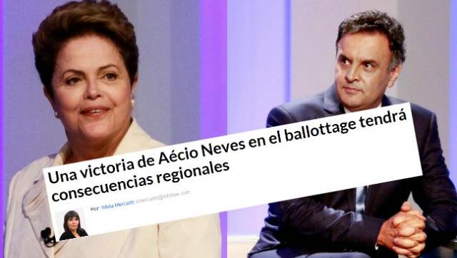 “Una victoria de Aécio Neves en el ballottage tendrá consecuencias regionales”, asegura desde el título la periodista Silvia Mercado, que recurre también al argumento que repitió dos veces en su columna el periodista Carlos Pagni hoy en La Nación: que la mayoría de los brasileños quiere un cambio.