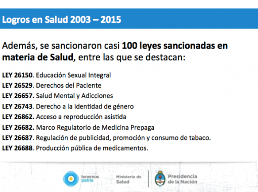 Ademas, Cristina dijo que se sancionaron casi 100 leyes sancionadas en materia de salud.