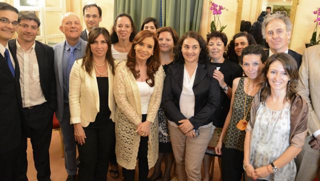 La Red Científicos Argentinos en Italia homenajeó hoy en Roma a la presidenta Cristina Fernández de Kirchner y le agradeció el trabajo del gobierno en el área de Ciencia y Tecnología con una placa "por su gestión en el campo científico tecnológico".