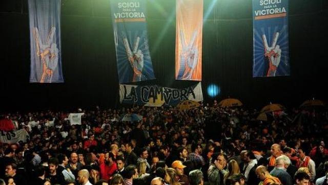 Numerosas columnas de organizaciones del peronismo kirchnerista, gremiales y de movimientos sociales se concentraban en las inmediaciones del estadio Luna Park, donde se encuentra el búnker del Frente para la Victoria.
