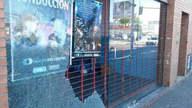 Ese mismo día en horas de la noche el local del Nuevo Encuentro-Frente para la Victoria de Haedo (Pte Perón ex Gaona 1545) fue atacado por cuatro personas que circulaban en motos y sufrió la rotura de todo el frente de vidrio.