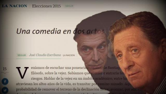 En apoyo claro a su candidatura presidencial, Escribano le exigió veladamente a Macri que redoblara su tono y su énfasis opositor hacia el gobierno de Cristina Kirchner. La nota se titula Una comedia en dos actos.