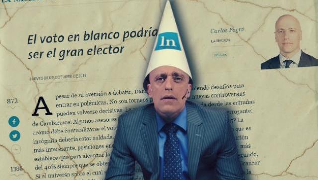 El columnista de La Nación, Carlos Pagni, propuso que para que su subestimado Daniel Scioli no gane en primera vuelta se compute como afirmativo el voto en blanco, así los porcentajes de todos los candidatos, pero principalmente del que salga primero, bajen.