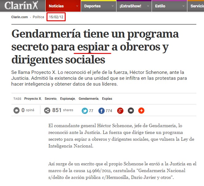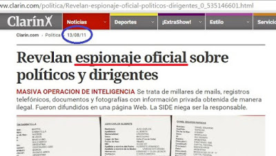 Bajo el título "Revelan espionaje oficial sobre políticos y dirigentes", Young explicaba que "se trata de millares de mails, registros telefónicos, documentos y fotografías con información privada obtenida de manera ilegal. Fueron difundidos en una página Web. La SIDE niega ser la responsable".