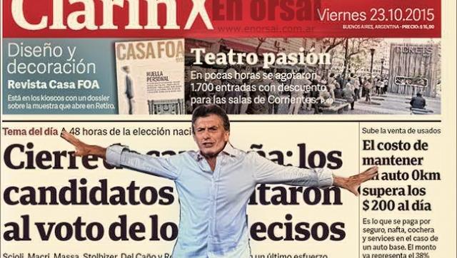 El apoyo del monopolio a Macri se hizo cada vez más evidente a lo largo de toda la campaña, pero ante los sondeos que lo dejan afuera de toda chance de ser presidente solo le queda tratar de frenar el impulso de Scioli.