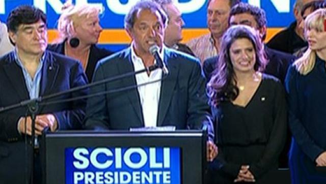 El candidato a presidente por el Frente para la Victoria, Daniel Scioli, reconoció la derrota en el balotaje que disputó con el candidato de la alianza Cambiemos, Mauricio Macri, a quien aseguró que llamó para felicitarlo.