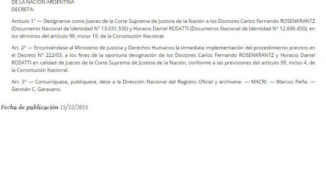Mauricio Macri está decidido a ir por todo, aún cuando la República esté en juego. En una medida que trajo críticas desde (con excepción de los antidemocráticos de siempre)todos los sectores, salteó los mecanismos institucionales para designar como Jueces de la Corte Suprema a Carlos Rosenkrantz y Carlos Rosatti sin pasar por el Senado de la Nación.