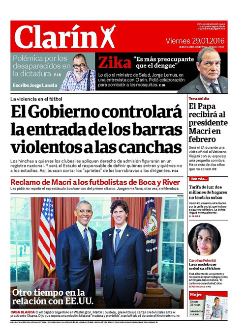 Sin embargo, Clarín afirma en titulo principal que “el Gobierno controlará la entrada de los barras violentos a las canchas”. Algo que ya ocurría de acuerdo a la Ley del Deporte.