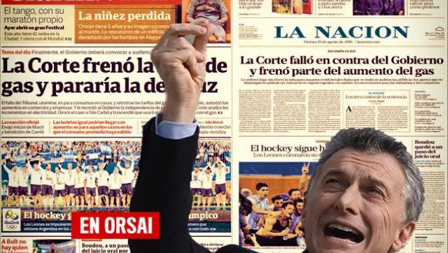 Por su parte, La Nación decidió jugar con el oficialismo y titula que “la corte falló en contra del Gobierno” y “le ordenó dejar sin efecto la suba”.