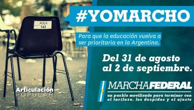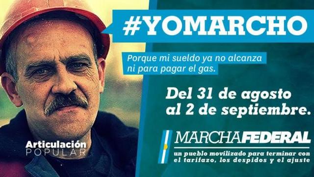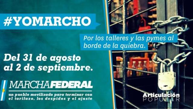 Las organizaciones participantes han constituido un espacio de unidad de articulación popular para convocar a una Gran Marcha Federal que contará con cinco grande columnas, dos que saldrán del sur, dos del norte y una de Cuyo. Todas ellas arrancarán el 31 de agosto y culminarán el 2 de septiembre en un gran acto en Plaza de Mayo.