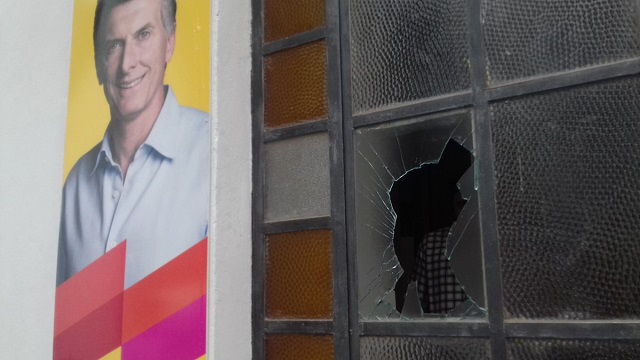 Fue durante una protesta de gremios del sector por los despidos en empresas del Parque Industrial. Acusan al gobierno nacional de abrir todas las importaciones “de manera total e indiscriminada” y por ello atacaron las sedes de su partido PRO y UCR en la Capital riojana.