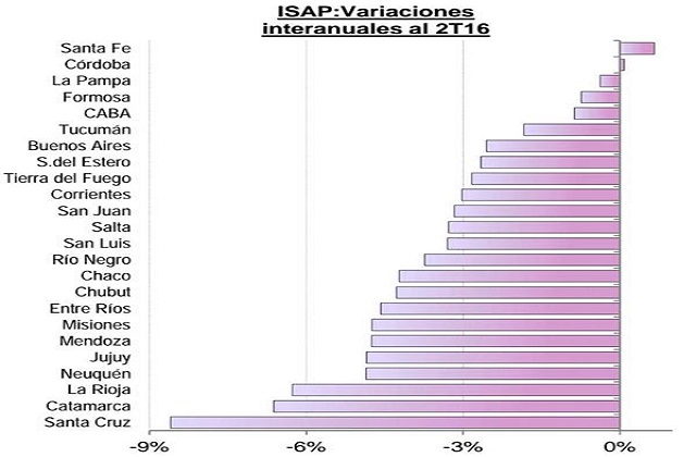 Según el Indicador Sintético de Actividad de las Provincias (ISAP) todas las provincias del país sufrieron el impacto de las políticas económicas que tomó el gobierno de Macri. Sólo Córdoba y Santa Fe lograron reducir el golpe.