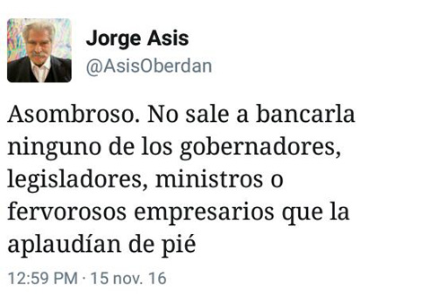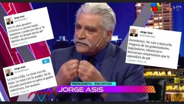 El escritor Jorge Asís publicó una serie de twitters que llamaron la atención a sus seguidores debido al cambio de postura con respecto a la apreciación sobre la ex mandataria.