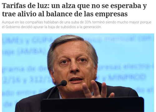 “Aunque en las compañías hablaban de una suba de 33% terminó siendo mucho mayor porque el Gobierno decidió apurar la baja de subsidios a la generación”, afirma Clarín para justificar las nuevas subas.