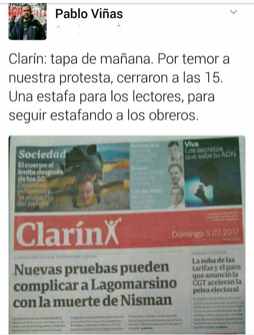 Los empleados despedidos de Clarín, en protesta ya publicaron la tapa del domingo.
