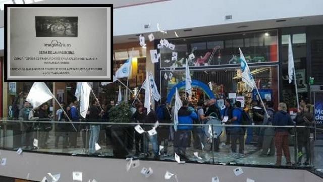 El jueves una protesta de los trabajadores del Sindicato de Empleados de Comercio (SEC), irrumpió en el shopping Alto Palermo reclamando el pago completo de las indemnizaciones a los más de 50 trabajadores que quedarían en la calle por el abandono del país de Imaginarium.