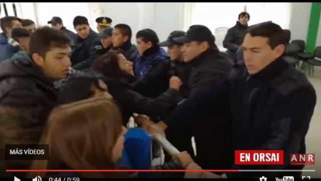 También se hicieron presentes la senadora Magdalena Odarda y la diputada María Emilia Soria a quienes se les impidió pasar al otro lado del vallado donde estaban los encargados de desarrollar la subasta.