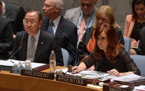 La Presidenta estuvo acompañada por el canciller Héctor Timerman; el secretario de Política Económica y Planificación del Desarrollo, Axel Kicillof; el secretario de Comunicación Pública, Alfredo Scoccimarro; el secretario Legal y Técnico, Carlos Zannini; y el secretario general de la Presidencia, Oscar Parrilli.