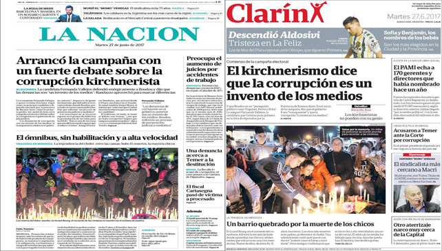 Por si alguien tenía dudas sobre la “independencia” de los medios masivos hace falta mirar las portadas de hoy. Tanto Clarín como La Nación se hicieron eco de la estrategia del oficialismo y todo el arco, no kirchnerista, de atacar a Unidad Ciudadana.