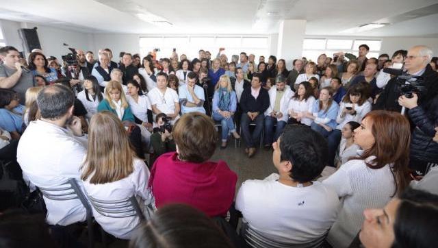 Estuvieron presentes en la visita al hospital junto a Cristina, el precandidato a senador nacional Jorge Taiana, la intendenta de La Matanza Verónica Magario y el precandidato a diputado nacional Fernando Espinoza.