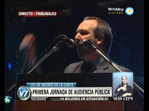Tras la audiencia ante la Corte Suprema de Justicia de la Nación se realizó frente al palacio de tribunales un acto en favor de la plena vigencia de la Ley de Medios. Allí, el titular del AFSCA, Martín Sabbatella, se refirió a la norma sancionada en 2009 y que continúa frenada en la Justicia por el Grupo Clarín.