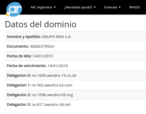 El dominio operaciones.com.ar pertenece a MSA y es usado normalmente en los operativos electorales de los que participa la empresa.