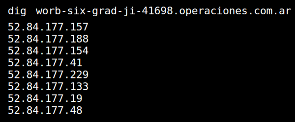 El nombre worb-six-grad-ji-41698.operaciones.com.ar resuelve a direcciones IP del servicio Cloudfront de Amazon, esto es, fuera de la República Argentina y donde un juez electoral local no tiene competencia.