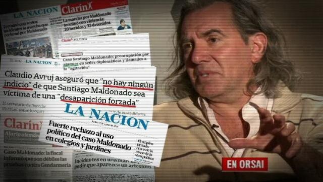 - Lamentablemente ellos no quieren que digamos que esto se parece a la dictadura, pero la verdad que cuando uno mira y compara; y piensa qué estarían diciendo los medios sobre el tema del secuestro de un joven, de la desaparición forzada de un joven en 1977, hoy están haciendo lo mismo. Muchos medios reproducen el discurso oficial de echarle la culpa a la víctima o de llevar a tal grado el tema de burlarse del desaparecido; y así como en la dictadura el cinismo llegaba a tal punto de que se hablaba de que los desaparecidos estaban en Europa o lo que respondían a las madres diciendo, 'señora se habrá ido con una chica'; todos esos comentarios que revuelven el estómago reproducirlos, y que hoy se están usando. Muchos son periodistas que estaban en esa época y que hoy utilizan la misma metodología, llevada al siglo XXI. No ponen el eje en que es el Estado, la justicia, las fuerzas de investigación que tiene el propio Poder Ejecutivo los que deben estar día a día, sol a sol, buscando todas las pistas para encontrar a Santiago Maldonado sino que están haciendo lo contrario. Por eso la frase que nos sale es la que refleja eso, están actuando de la misma manera que muchos actuaban en la época de la dictadura. En esto Clarín, La Nación y algunos sectores del periodismo televisivo tienen la mayor responsabilidad.