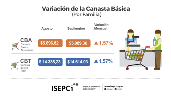 De acuerdo al Índice Barrial de Precios (IBP), los productos de la Canasta Básica de Alimentos (CAB) aumentaron en septiembre 1,57%. Mientras, la Canasta Básica Total (el total de los productos básicos que, además de los alimentos, las personas necesitan para vivir adecuadamente) mostró un aumento similar.