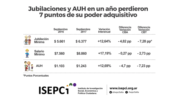 “Los que reciben el salario mínimo corrieron un poco más de cerca detrás de los aumentos de precios: 'solo' habrían perdido entre dos tres puntos de su ya menguado poder adquisitivo. Recién cuando comiencen a recibir los valores anunciados por el Gobierno en agosto —pero cobrados efectivamente en octubre—, empezará el reintegro del deterioro sufrido en los meses anteriores, sobre el que habrá que ir descontando los nuevos aumentos de precios”, señaló el ISEPCi.