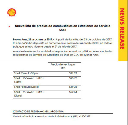 Luego de la victoria en varios distritos de todo el país y de los festejos desenfrenados del macrismo, la petrolera mimada del Gobierno anunció sus nuevos aumentos. El comunicado llegó minutos pasados de la medianoche.