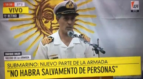 Mientras el vocero de la Armada, Enrique Balbi, informaba que se dio por terminada la fase de rescate de los 44 tripulantes del submarino sin poder encontrarlos, el Presidente enviaba mensajes por redes sociales sobre el G20. Ahí todo el respeto del mandatario a la búsqueda y rescate de los marinos.