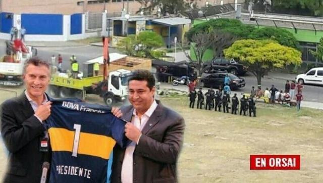 Al momento del desalojo se hicieron presentes una treintena de funcionarios policiales y una grúa de la empresa Paolini, que según fuentes del propio club, pertenecería a un dirigente de Boca Juniors.