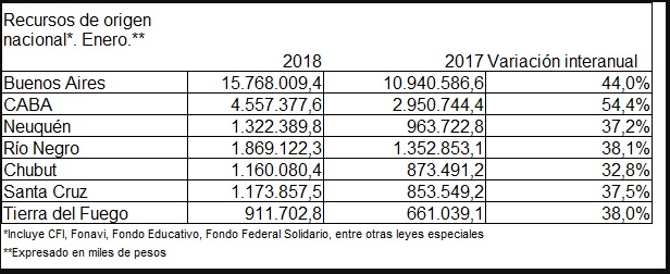 En enero de este año, las dos jurisdicciones más beneficiadas tuvieron un incremento de su coparticipación federal en un 50,5 % (Buenos Aires) y un 59,7% (CABA), mientras que las provincias de la Patagonia crecieron entre un 34 y 37 por ciento.