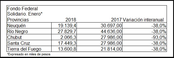La caída de los recursos del Fondo Federal Solidario para las provincias de la Patagonia fue del 38 por ciento.