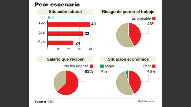(por Luis Autalan) El CEM, constituido por la Universidad Nacional Arturo Jauretche, la Universidad Metropolitana del Trabajo y la Universidad Nacional de Hurlingham le brindó a BAE Negocios el anticipo de estadísticas que acentúan que respecto de la situación laboral de la mujer, en comparación a 2017, el 40% de las encuestadas aseveró que su condición es "peor o mucho peor", el 33% consideró que no hay diferencias al período citado y el 24% consideró que su situación es mejor o muy superior al año pasado.