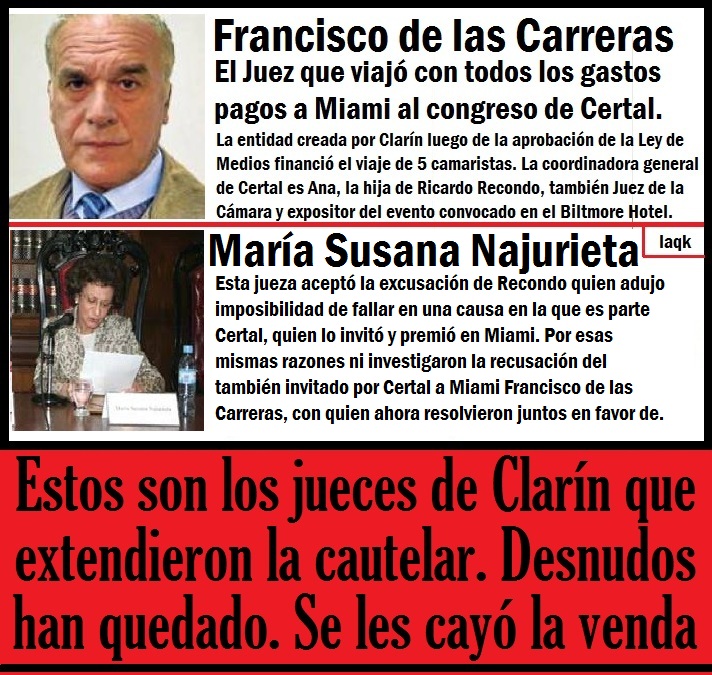 Finalmente, de las Carreras confirmó que su viaje a Miami para asistir a un congreso de comunicación audiovisual fue pagado por una organización de medios, denominada CERTAL, en cuyo Consejo Directivo se encuentra como Director titular el Gerente de Asuntos Regulatorios del Grupo Clarín, Hernán Verdaguer. Fuente: lainsuperable.wordpress.com