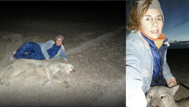 La PROvida María Belen Tapia junto a un puma muerto.